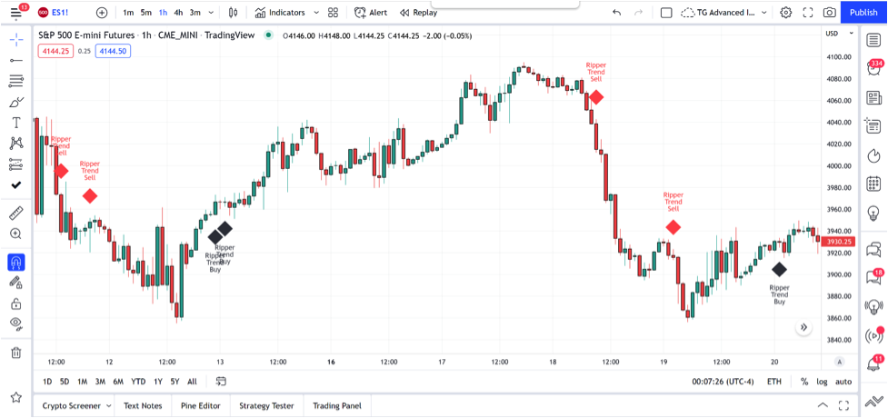 The Ripper Trend Signal is a powerful new signal for trend trade entries. It combines multiple studies, and looks for confluence with them to plot a buy (long) or sell (short) signal on the chart. This is helpful because it gives you the power of multiple indicators without cluttering up the screen, or having to determine whether they are in agreement or not. It gives you 1-2 signals per entry area. The first signal is an early entry, the second signal is more confirmation of the signal. This signal also has the ability to send off an alert and alerts can be set on multiple time frames.